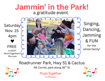 Each week in our music classes at Music Together in Phoenix, babies, toddlers, preschoolers, and their grownups who love them, come together to play & connect musically. Little ones love playing along in class and caregivers love being a part of their children's growth into confident music-makers. And everyone loves our songs that'll have you tapping along in no time. Music Together® is the perfect family activity in Phoenix.